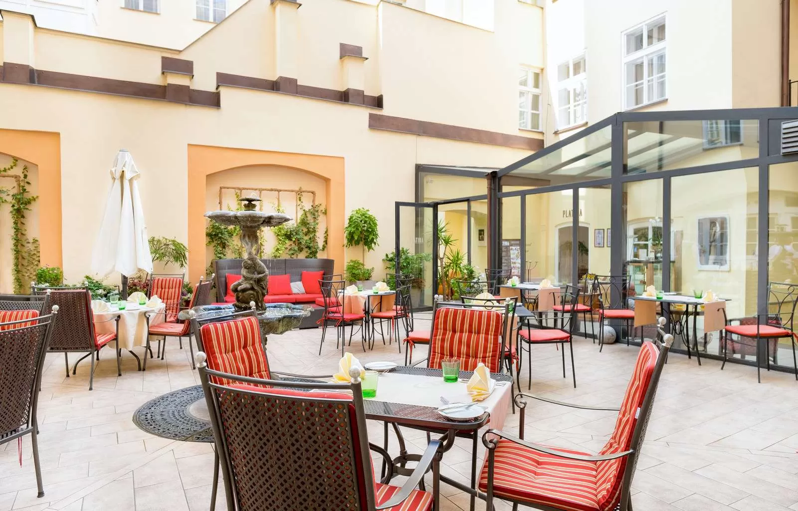 Ресторан «Platina Restaurant & Garden» предлагает отведать в романтической и элегантной обстановке блюда международной и итальянской кухни. Шеф-повар Владимир Гонзак специализируется на приготовлении фирменных блюд исключительно из свежих продуктов. В его кухне традиция сочетается с фантазией.
