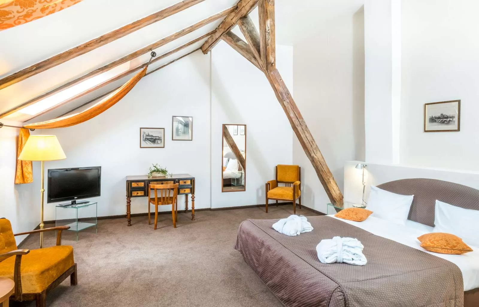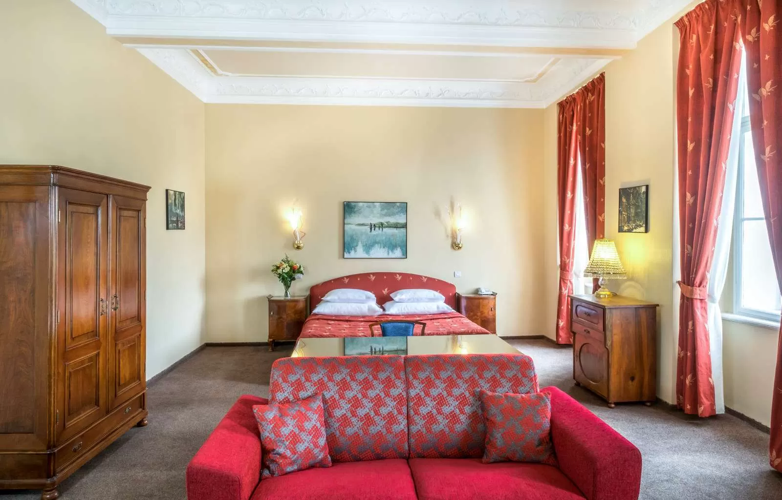 Элегантный номер Classic с супружеской кроватью или с отдельными кроватями полностью оснащен современным оборудованием, например, бесплатным WiFi подключением, современной ванной, уютно обставлен антикварной мебелью. Размер от 22 до 25 м².