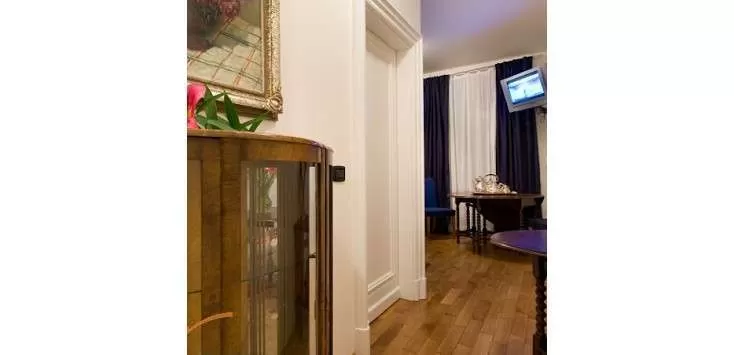 Во всех апартаментах паркетные или мраморные полы, лепные потолки, мебель антиквариат.