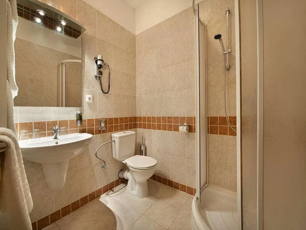 • Single: одноместный номер, в ванной комнате душевая кабина, 1 спальня, размер кровати 90х200см, невозможна дополнительная кровать, возможна детская кроватка, размер номера 20м².