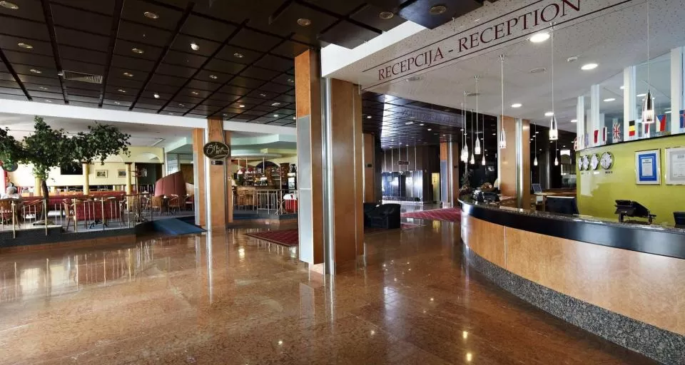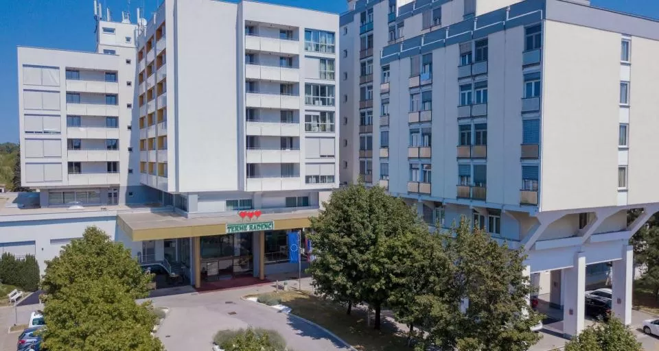 Лечебный центр «Corrium», комплекс термальных бассейнов, «Мир саун» (6 саун), солярий, фитнес центр, Аюрведа центра, Салон красоты, парикмахерская, ресторан, бары, кофейня, теннисные корты (4 открытых и 3 закрытых), конгрессный центр, казино в парке (20 жетонов бесплатно). Рецепция отеля «Радин» работает круглосуточно. На курорте круглосуточно присутствуют врач и медсестра.