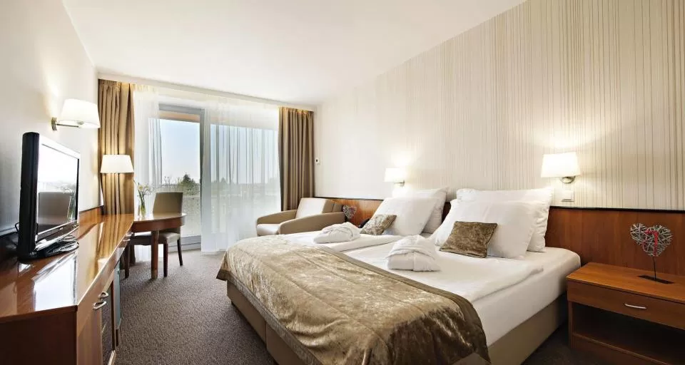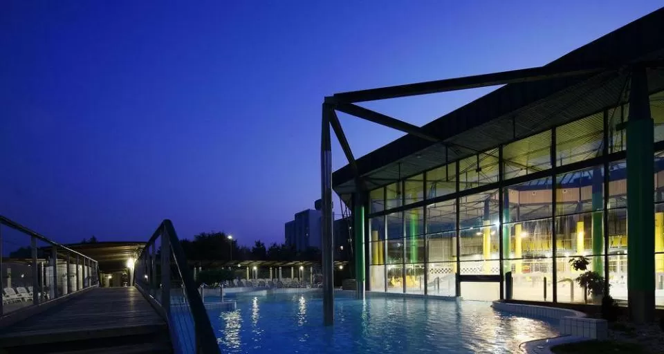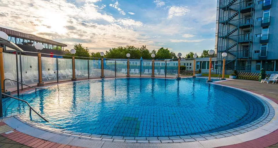 Комплекс бассейнов: составляет 1460 кв2 водной поверхности. В комплексе: крытые и открытые бассейны с термальной водой (+33°С +34°С), крытые джакуззи с термальной водой (+38°С), детские крытые и открытые бассейны с термальной водой (+33°С +34°С), крытый 25 м олимпийский бассейн с пресной водой (+29°С), бассейн Кнайпа с холодной водой (+17°С), солярий, «Мир саун» (2 финские, турецкая, травяная, инфракрасная сауны и тепидарий).