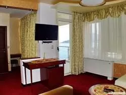 APART STD: на четвертом этаже, гостиная с кожаным мебельным гарнитуром (диван раскладывается в двуспальное место), спальня с французской кроватью, большая ванная комната с джакузи, биде, душевой кабиной – вход из гостиной, и обычная ванная комната – вход из спальни, терраса с видом на море. Размещение минимум 3 человека, максимум - 4 человека.