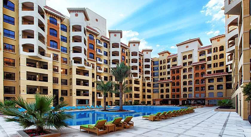 Расположен на искусственном острове Marjan