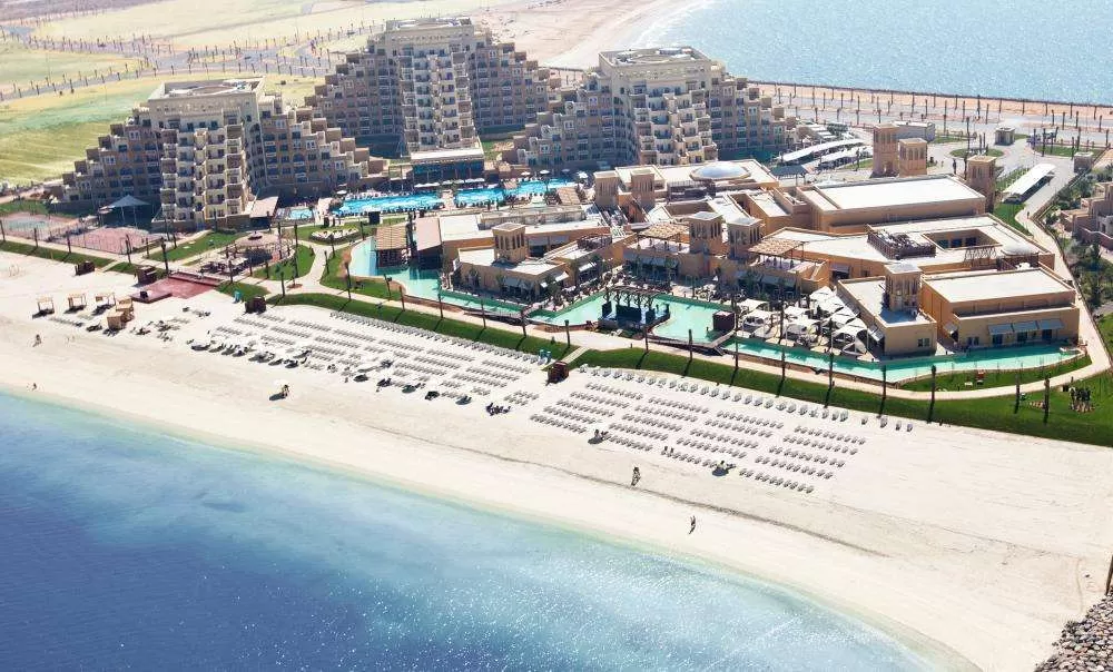 на пляже искусственного острова Al Marjan, в 20 минутах езды от центра Рас-аль-Хаймы, в часе езды от международного аэропорта Дубая, в 33 км от аэропорта Рас-аль-Хаймы, в 60 км от аэропорта Шарджи.