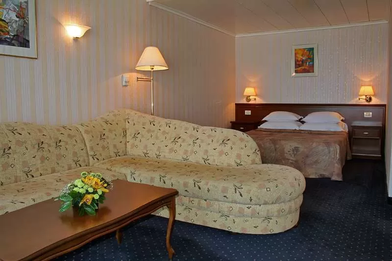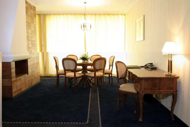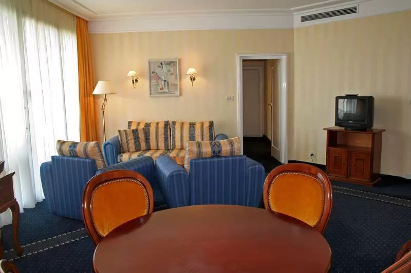 В номере: центральный кондиционер • спутниковое TV • мини-бар • телефон • сейф (бесплатно) • интернет-связь (бесплатно) • санузел с ванной и феном • халаты • пол – ковровое покрытие • уборка номера – ежедневно • смена белья – ежедневно • смена полотенец – ежедневно.