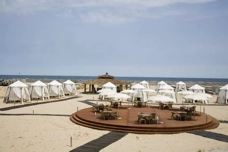 Собственный песчаный; зонты, шезлонги - бесплатно. У бассейна: зонты, шезлонги - бесплатно.