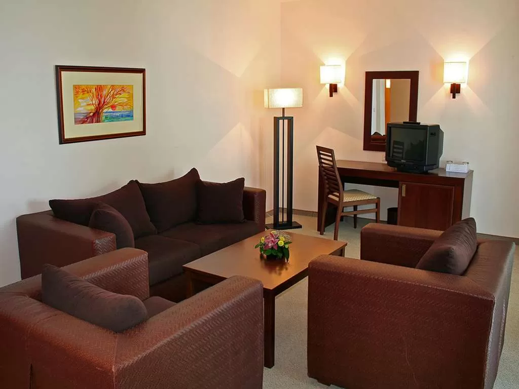 В апартаменте: гостиная с одной/двумя спальнями (разделенные дверью) • обставлены, как двухместные номера.