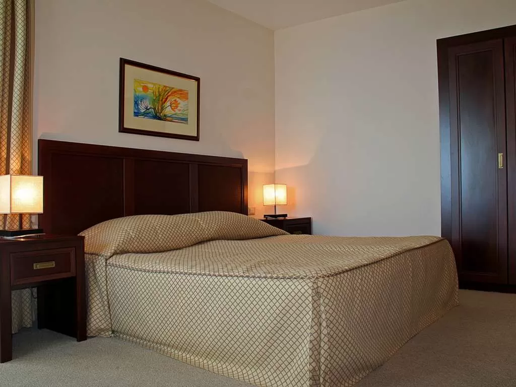 В номере: центральный кондиционер • спутниковое TV • мини-бар • телефон • сейф (за доп. плату) • интернет-связь (за доп. плату) • санузел с ванной и феном • балкон • пол – ковровое покрытие • уборка номера – ежедневно • смена белья – 2 раза в неделю • смена полотенец – 2 раза в неделю.