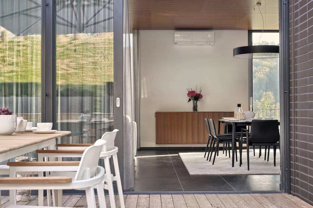 В комплексе 5 вилл, в каждой вилле по 2 апартамента: один апартамент «South» и один апартамент «Nord». Апартаменты «Nord» дополнительно оснащены персональной сауной. Площадь апартаментов – 120 кв. м. В каждом апартаменте возможно размещение до 4 человек.