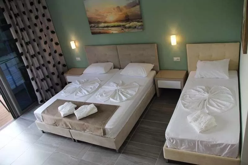 Муниципальный 100 м от отеля, мелко-галечный. Пляжные полотенца не предоставляются.