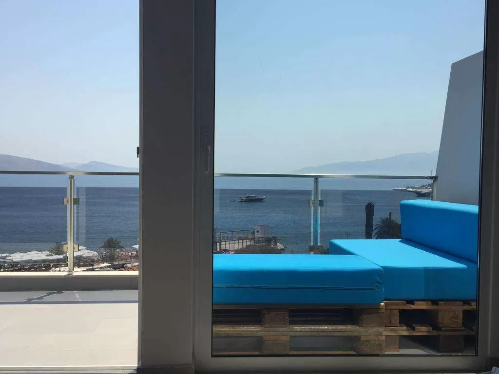 SUITE Top floor SV, около 60 м2, двухкомнатный номер на верхнем этаже с большой террасой и видом на море. Состоит из спальни с двуспальной кроватью и гостиной с двухместной диван-кроватью. Максимальное размещение - 4 взрослых и ребенок до 3х лет, который спит вместе с родителями. Всего 2 номера в отеле.