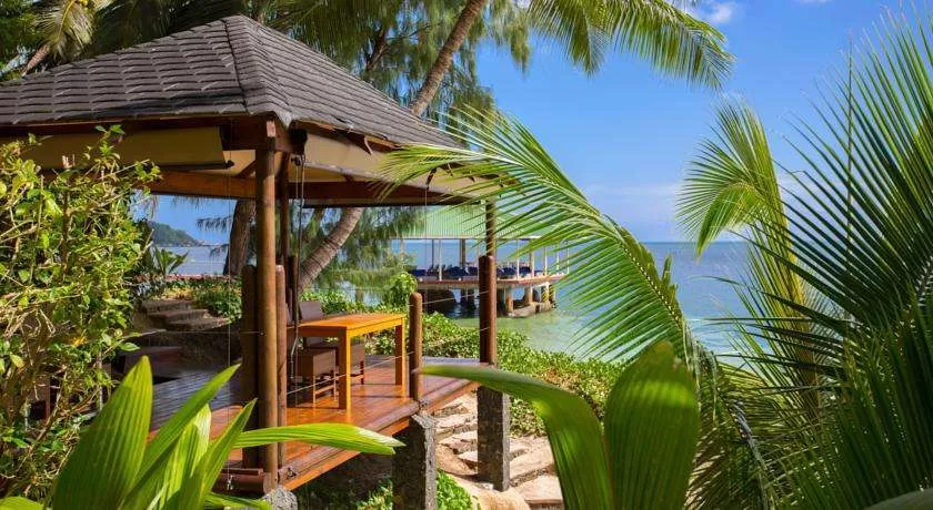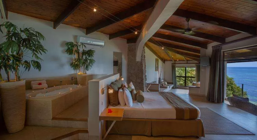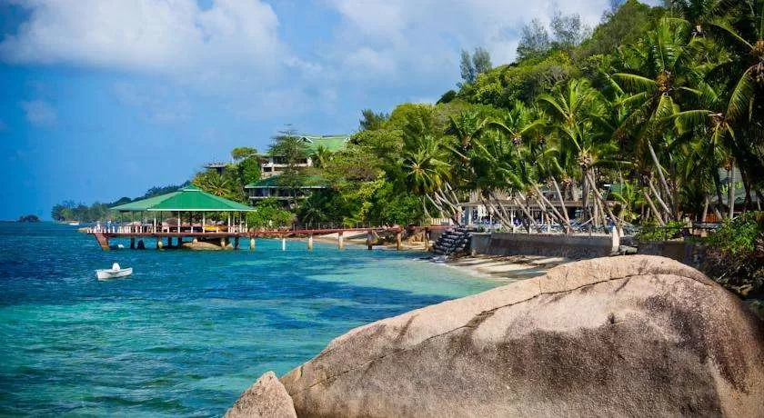 на юго-западном побережье о. Праслен, в 15 минутах полета и 45 минутах езды на лодке от международного аэропорта Маэ.