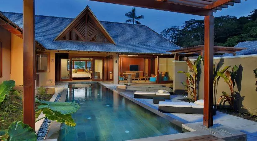 Hill side villa 2-bedroom (220 кв. м): небольшой персональный бассейн, 2 спальни, 2 ванные комнаты. Дополнительно: мини-кулер для вина и коллекция вин (предоставляются по желанию клиента за дополнительную плату), оборудование для приготовления чая и кофе. Расположены на холме. Вид на морской заповедник Port Launay.