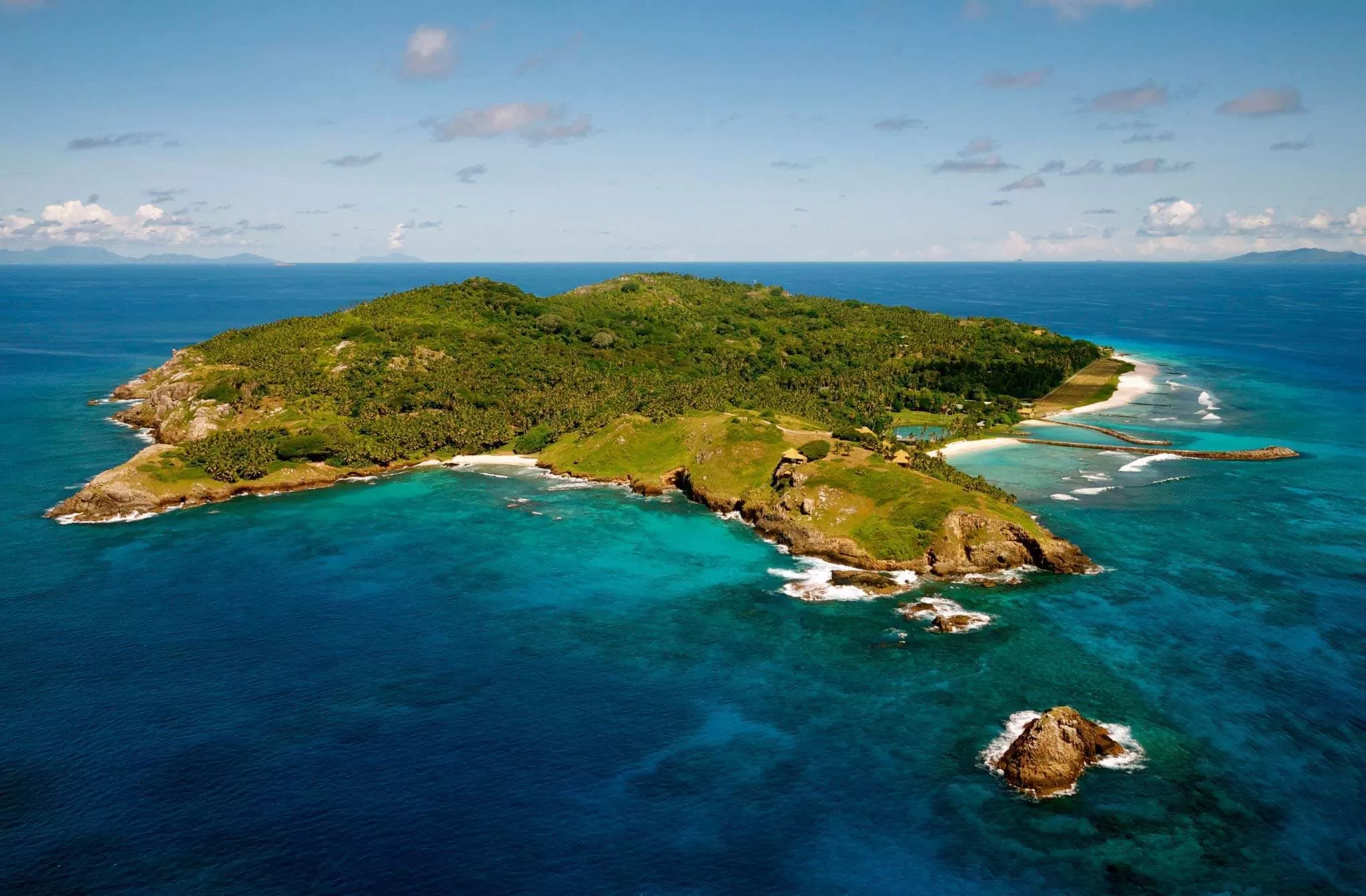 Престижный курорт Fregate Island Private расположен на частном острове, всего в 20 минутах перелета от Маэ. Дивная нетронутая природа, уединение и высочайший уровень комфорта – таков мир Fregate Island Private. Концепция курорта: «вы в гостях у природы». Девственные тропические рощи, богатейшая фауна (некоторые её представители встречаются только здесь). Fregate Island Private состоит всего из 16 вилл. Построенные из красного дерева и африканского тика бунгало оформлены с безупречным вкусом. Тайский шелк и египетский хлопок, деревянная отделка и восточный антиквариат. Все это создает дивную, ни на что не похожую атмосферу. Ресторан Plantation House, которым так гордится Fregate Island Private предлагает широкий выбор блюд азиатской и креольской кухни, а в ресторане Fregate House можно насладиться изысками международной кухни. Овощи, фрукты и зелень выращиваются здесь же, на острове. У отеля есть собственный флот: яхты, моторные лодки, катамараны. На острове семь великолепных пляжей, песок на которых, по утверждению владельцев, более мелкий, чем где бы то ни было.