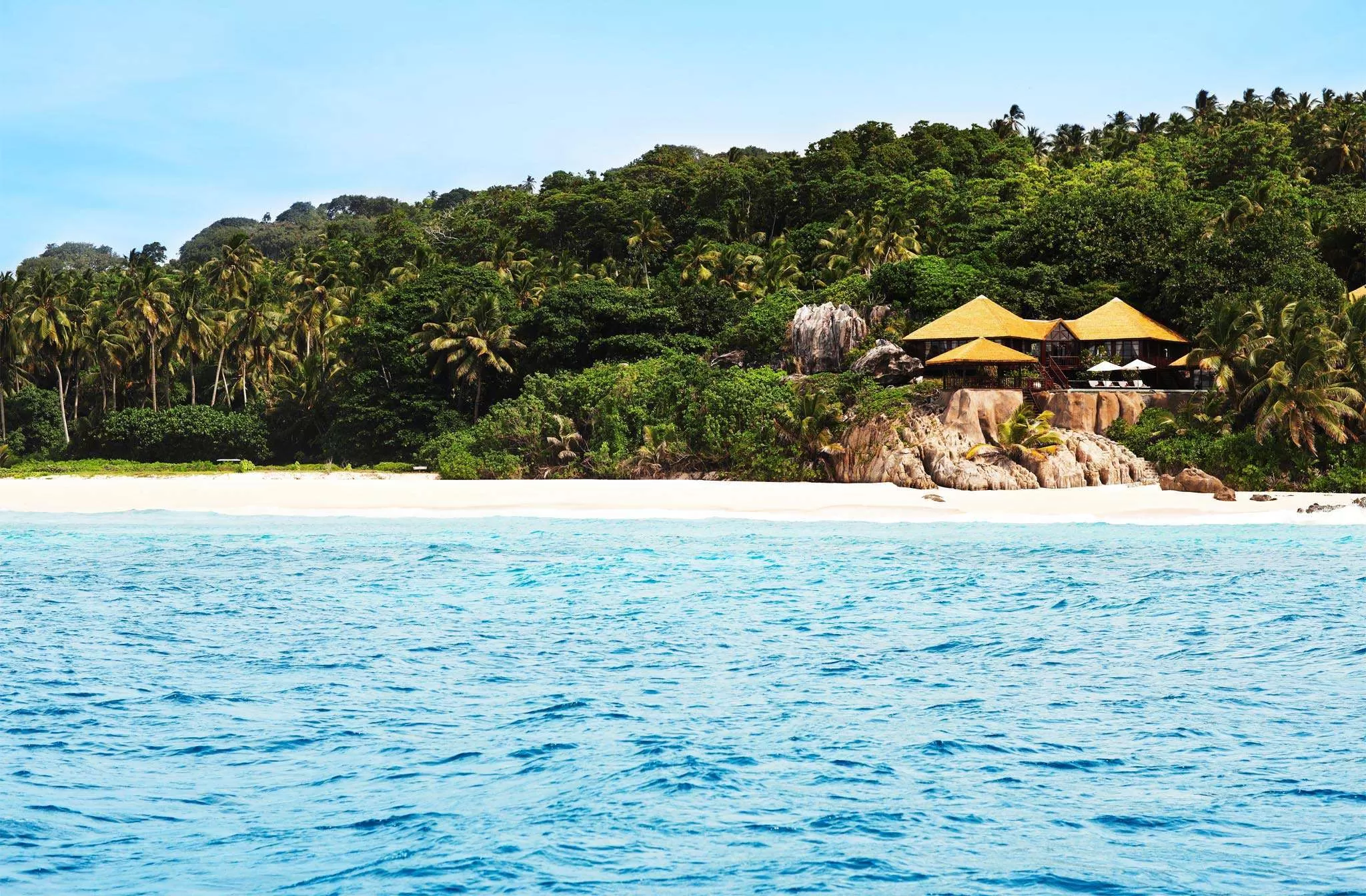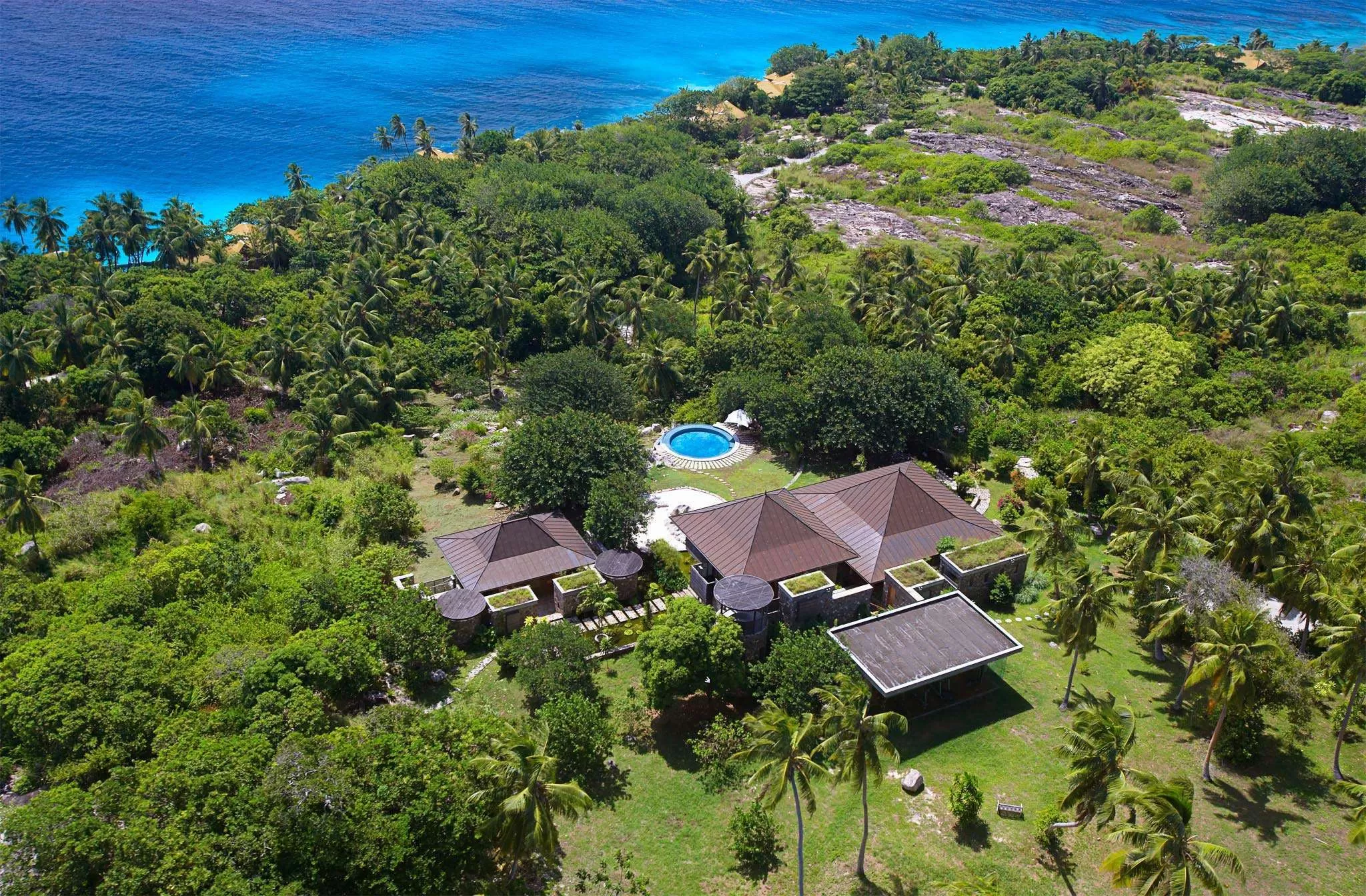 на частном острове Фрегат (площадь острова – 3 кв. км), в 20 минутах перелета на самолете или вертолете или 1 часе 30 минутах езды на моторной яхте от острова Маэ.