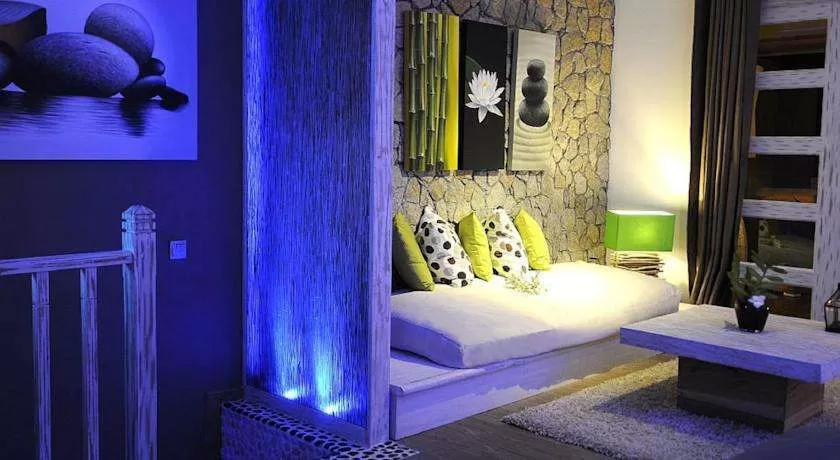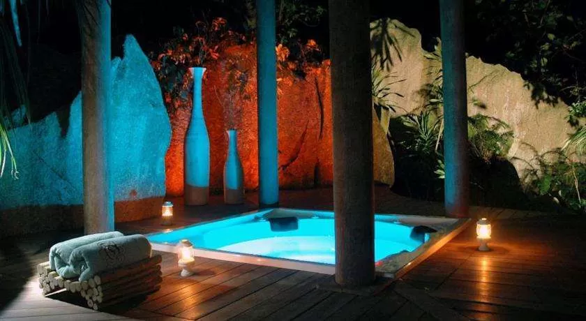 Villa de Charme "Elegance" (100 кв. м): терраса с джакузи на открытом воздухе, спальня с кроватью queen-size, гардеробная, ванная комната на открытом воздухе. Дополнительно: радиотелефон.