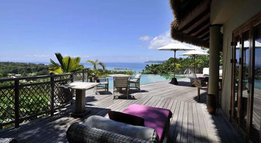 Presidential villa 3-bedroom (485 кв. м): терраса с персональным бассейном и джакузи на открытом воздухе, беседка, гостиная и обеденная зоны на открытом воздухе, гостиная, 3 спальни (две – с кроватями queen-size, одна – с двумя отдельными кроватями), 2 гардеробные, 2 ванные комнаты на открытом воздухе (одна – с ванной). Дополнительно: радиотелефон. Услуги персонального камердинера. Вид на остров Праслен. Возможно присоединение дополнительной спальни (кровать queen-size).