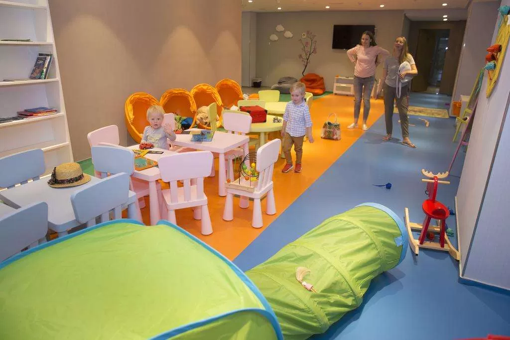 Детский бассейн, детская кроватка (под запрос), в ресторане детские стульчики и меню, при необходимости предоставляются услуги няни.