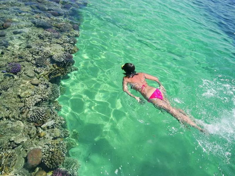 Заход в море с понтона (70 м), рядом коралловый риф (рекомендуется специальная обувь).