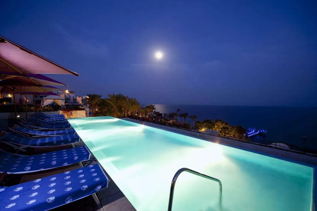 Отель расположен на первой береговой линии в районе Шаркс Бей, в 8 км от аэропорта города Шарм Эль Шейх, в 7 км от залива Наама-Бэй.