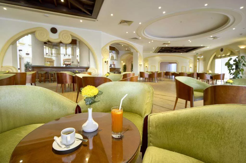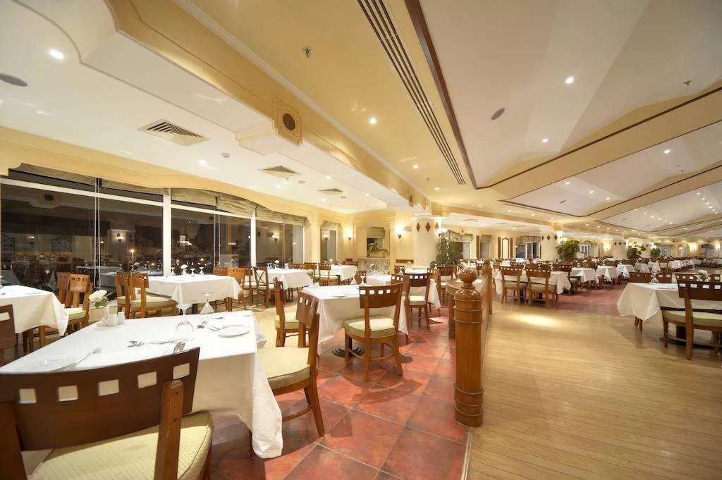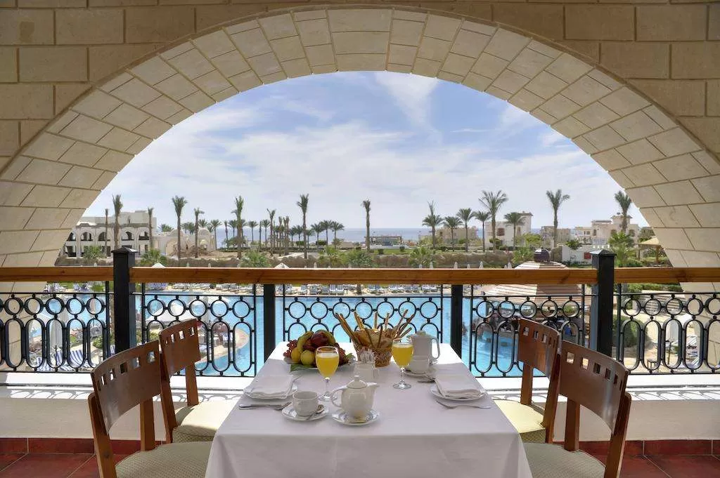 “Let's Eat: предлагает разнообразные блюда интернациональной кухни, шведский стол на завтрак, обед и ужин, вид с террасы на бассейн и на Красное море.