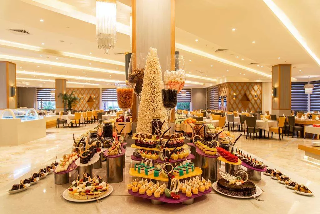 Главный ресторан Zodiac рассчитан на 900 гостей (07:00-11:00, 12:30-14:30, 18:30-21:30, 23:00-02:00), Rixy Cafe ресторан в Rixy Club, Papyrus Восточный ресторан Аля Карт рассчитан на 80 гостей (18:30-21:30), Hatmehit ресторан Морепродуктов рассчитан на 80 гостей (18:30-21:30), Taj Mahal Индийский ресторан Аля Карт рассчитан на 120 гостей (18:30-21:30), Callaina Итальянский ресторан Аля Карт рассчитан на 110 гостей (18:30-21:30), Lalezar Турецкий ресторан Аля Карт рассчитан на 60 гостей (18:30-21:30), Feng Shui Дальневосточный ресторан Аля Карт рассчитан на 85 гостей (18:30-21:30), Sakura ресторан Суши рассчитан на 40 гостей (18:30-21:30), Tides Beach Snack ресторан на пляже рассчитан на 80 гостей (11:00-17:00), Piano бар (24 часа), Лобби бар (09:00-00:00), Lagoon бар у бассейна (10:00-17:00), Oasis бар у бассейна (10:00-17:00), Tiran Island бар на пляже (09:00-00:00), Cafe De Nuit (12:00-00:00), Vitamin SPA бар (08:00-20:00), 7 бассейнов для взрослых (два с подогревом в зимний период), 3 детских бассейна (один с подогревом в зимний период), 3 водные горки в бассейне с подогревом в зимний период, Клуб под открытым небом Blue X (работает два раза в неделю), Ночной клуб Rixos Night Club (работает каждый день с 23:00). Магазины. Конференц зал Agora (площадь: 380 кв.м., рассчитан на 150 гостей)