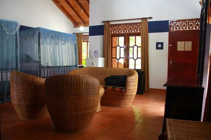 Кондиционер, потолочный вентилятор, москитная сетка, спутниковое ТВ, балкон, телефон, мини-бар, ванная комната (душ/туалет)