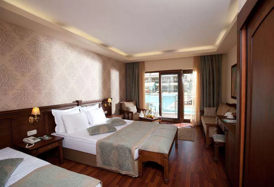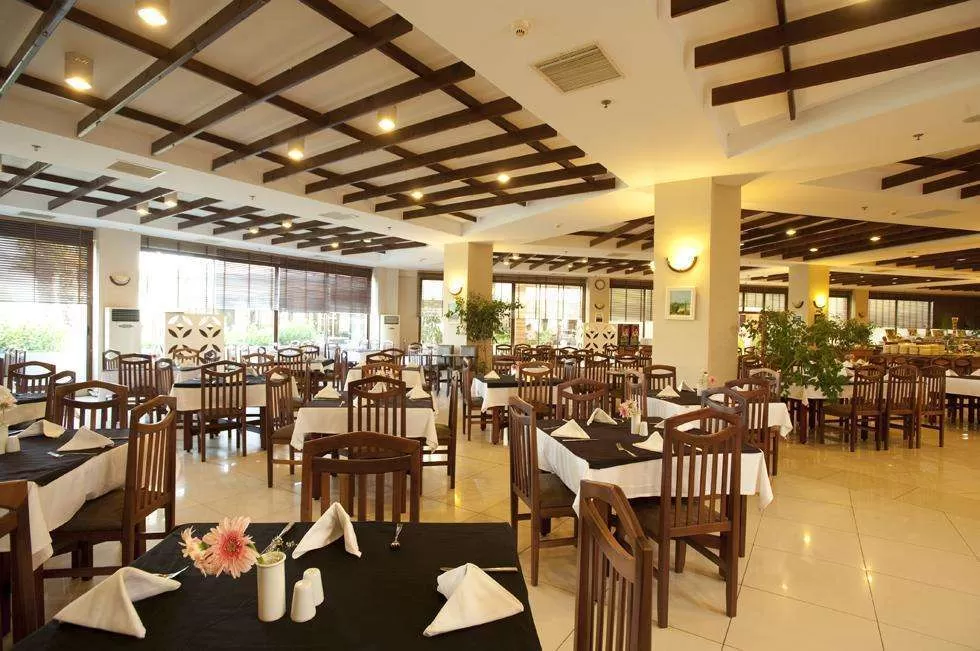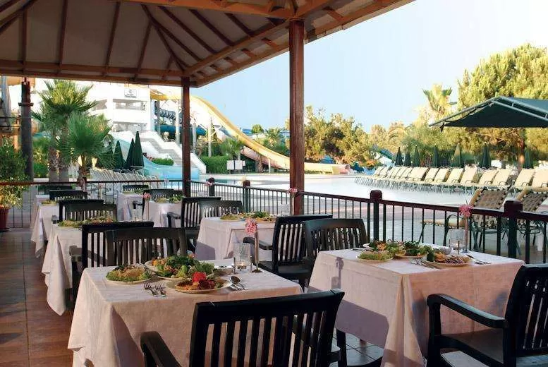 В ресторанах и барах: завтрак, обед и ужин – шведский стол, диетическое меню, гёзлеме, горячие и холодные закуски в течение дня, чаепитие, кофе, выпечка, мороженое в определенные часы, ночной суп и закуски, услуги ресторанов A’lacarte по предварительной резервации -1 посещение каждого, алкогольные и безалкогольные напитки местного производства на разлив до 00:30, безалкогольные напитки в лобби-баре круглосуточно, напитки на дискотеке (23:00-02:00) бесплатно.