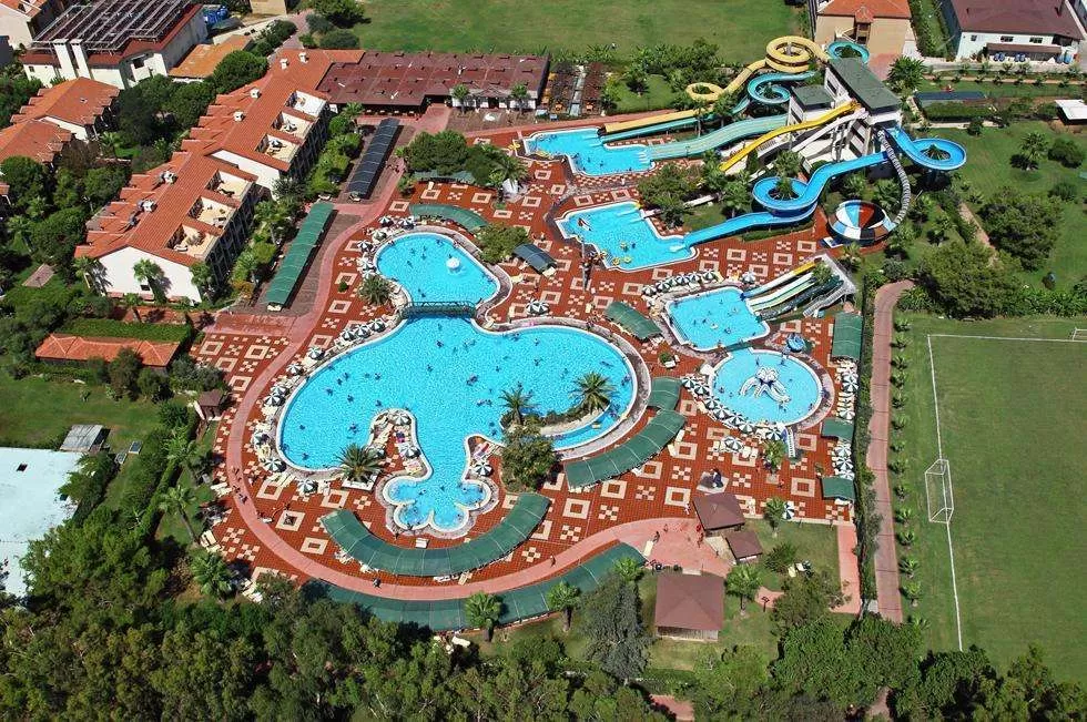 3 открытых бассейна, один из которых олимпийский с водопадом, 1 бассейн с джакузи и «бешеной рекой», релакс-бассейн, VIP Select открытый бассейн , релакс-зона c бар-рестораном, аквапарк, зоопарк, крытый бассейн с обогревом, парк аттракционов для детей и взрослых (бесплатно),футбольное поле, конференц-зал (до 350 чел), салон красоты, SPA-центр, 5 теннисных кортов (тартан), основной и 3 ресторана A’la carte (Рыбный, Китайский, Мексиканский), 2 Snack-ресторана, 6 баров, кафе-кондитерская, ТВ-зал (на 125 чел), дискотека.
