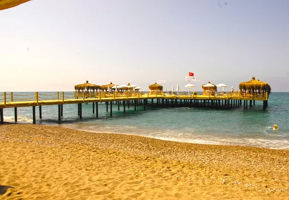 песчано-галечный, имеется пирс; пляжу присвоен сертификат чистоты и качества «Blue Flag»; зонтики, шезлонги, матрасы, полотенца – бесплатно.