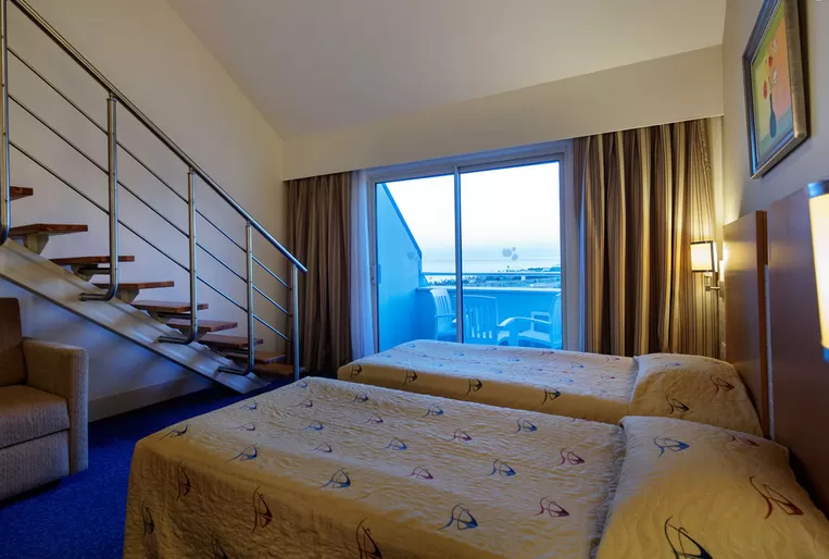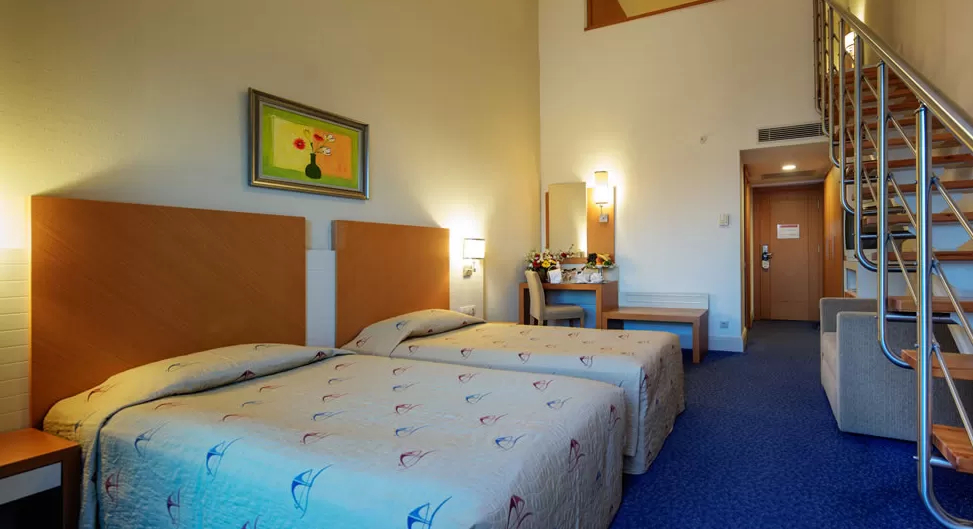 Dublex Family Suites (55 м2) двухэтажный номер: гостиная, две спальни с 1 french и 2 twin кроватями с разделительной дверью, в некоторых одна или две ванные комнаты, оснащение стандартного номера.