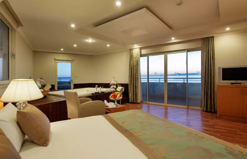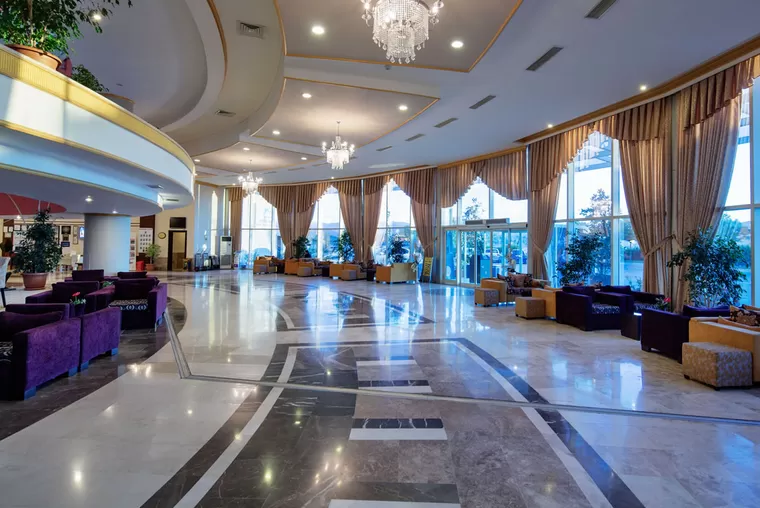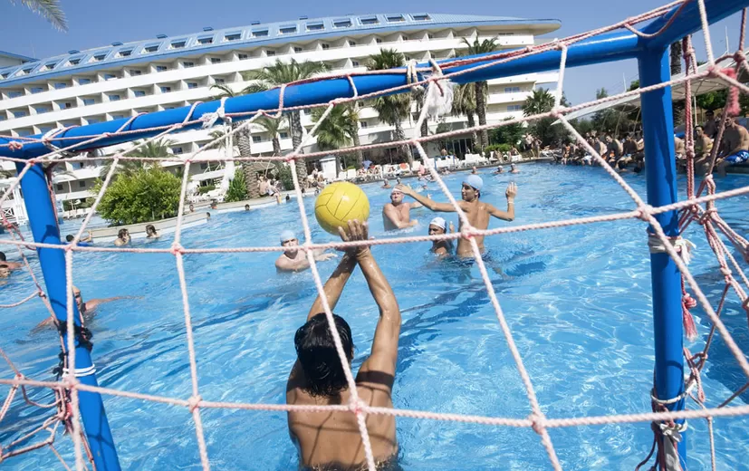 Бесплатные услуги: анимационные программы, WI-FI в лобби и основных помещениях, открытый фитнес-центр, турецкая баня, 2 сауны, парная, шок-душ, джакузи, настольный теннис, волейбол на пляже, баскетбол, мини-футбол, мини-гольф, стретчинг, бочча, дартс.