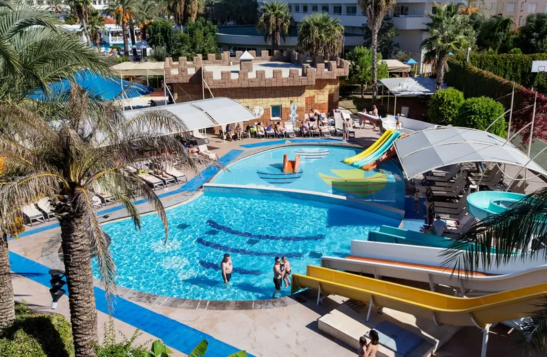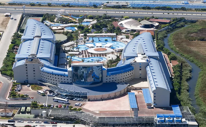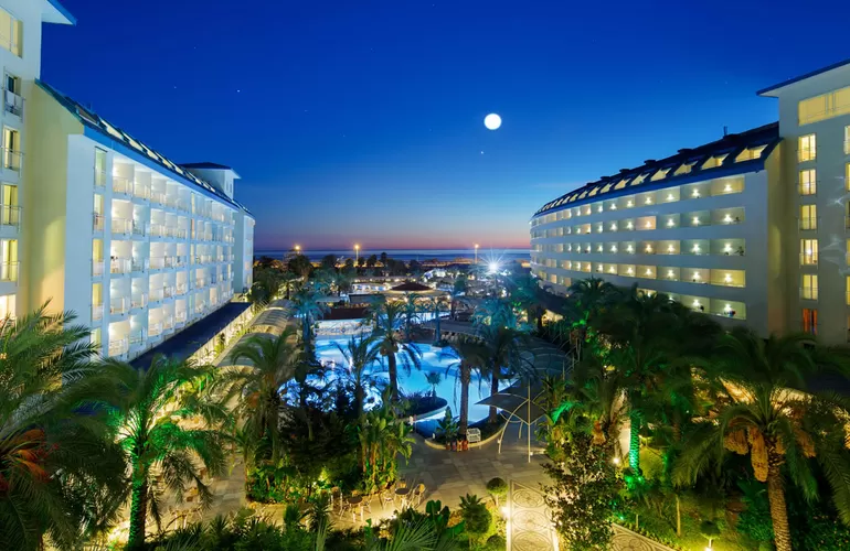 2 открытых бассейна, 2 крытых бассейна (в зимний период), аквапарк (7 водных горок), 2 теннисных корта (жесткое покрытие), SPA-центр, 4 конференц-зала, основной и 5 ресторанов A’la Carte (Итальянский, 2 Турецких, Мексиканский и Рыбный), 10 баров, турецкий кафе, кондитерская, дискотека.