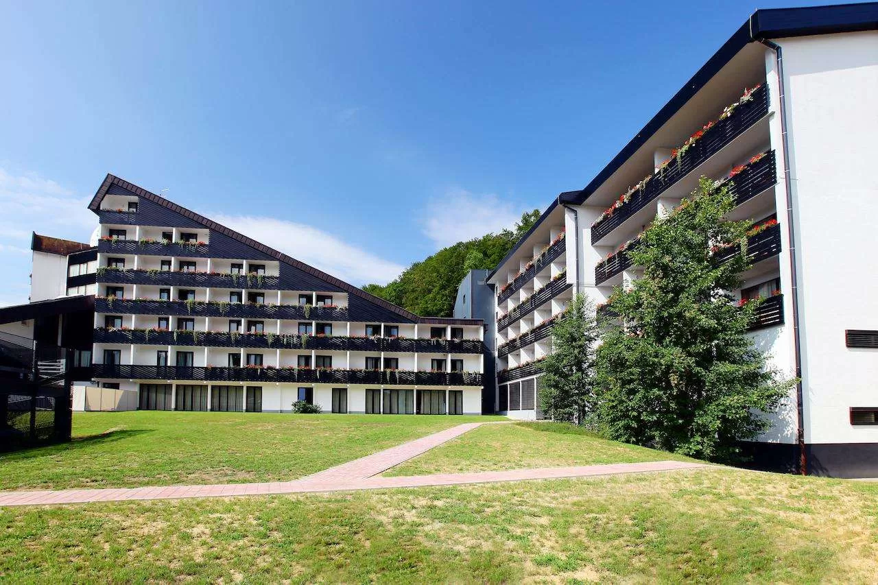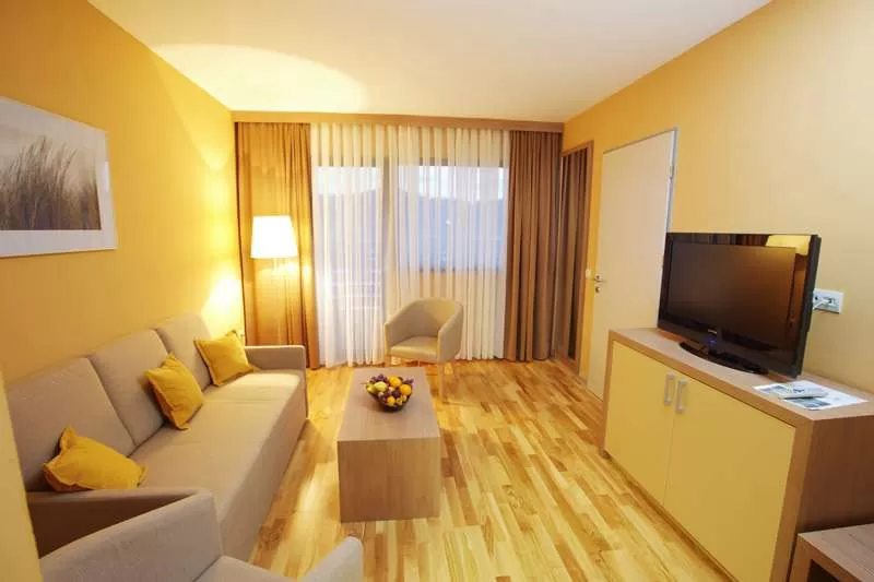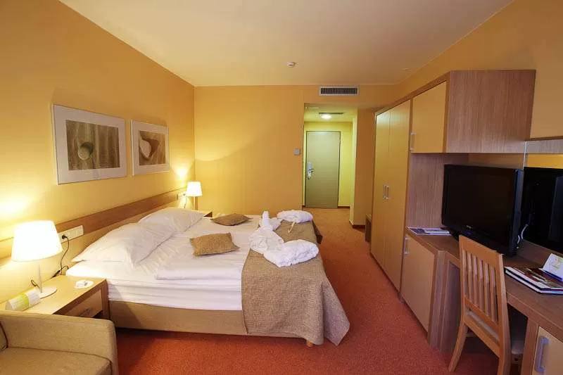 В отеле: ресторан на 330 мест, аперитив – бар на 60 мест, салон красоты, ТВ-зал, магазин периодической печати и сувени-ров, бассейн с термальной водой, тренажерный зал.