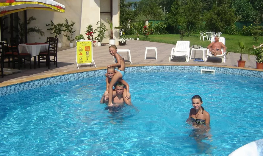 Открытый бассейн с детской секцией,, пляжный волейбол, пляжный футбол, верховая езда, водные виды спорта.