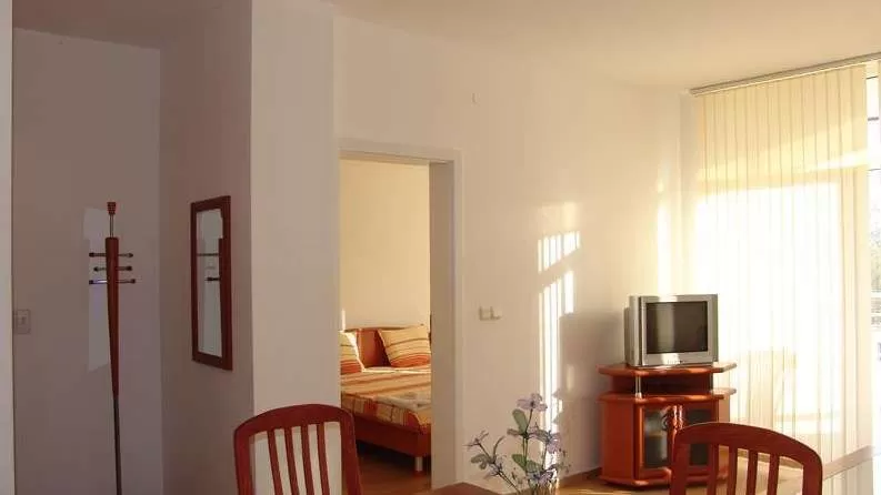 Апартамент с двумя спальнями: кухня, гостиная с раздвижным диваном, 2 спальни, ванная комната с душем.