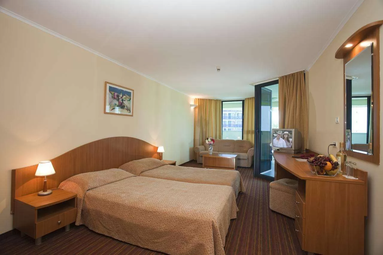 В номере: центральный кондиционер• спутниковое TV• мини-бар (за доп. плату)• телефон• Wi-Fi (за доп. плату)• санузел с душем• фен• балкон• пол – ковровое покрытие• уборка номера – ежедневно• смена постельного белья – 1 раз в неделю• смена полотенец – ежедневно.