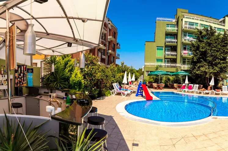 Открытый бассейн с бесплатными лежаками и зонтами • фитнес (за доп. плату) • парикмахерская (за доп. плату).