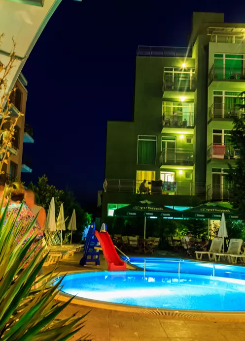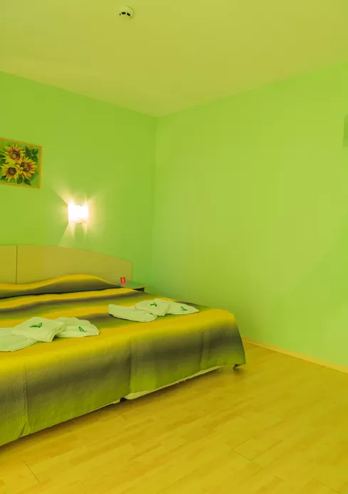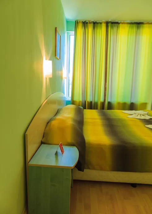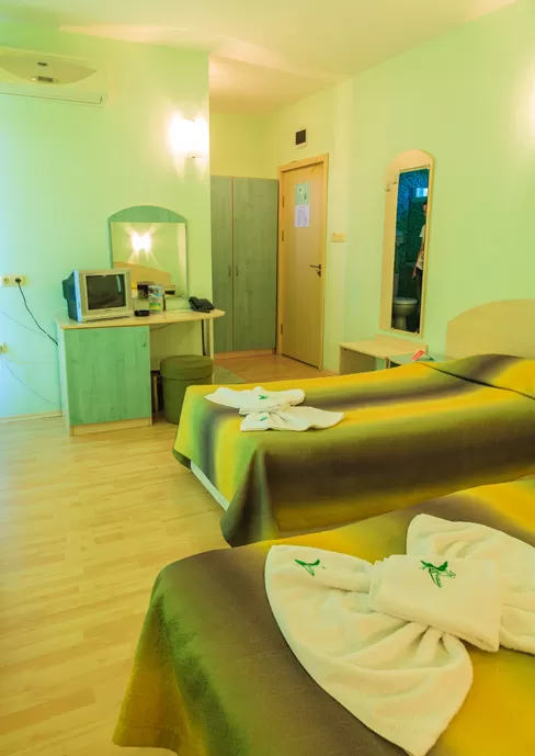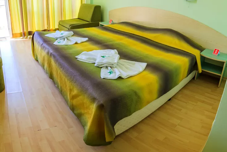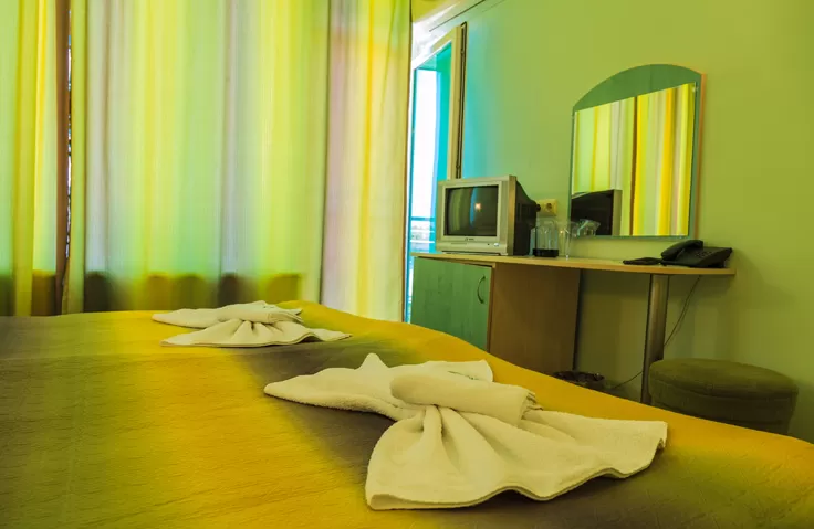 В номере: • кондиционер • TV • телефон • холодильник • вид на бассейн (за доп. плату) • балкон или терасса (стол + 2 стула) • доп. кровать – раскл. диван • возможность поставить вторую доп.кр. • уборка – каждый день • смена полотенец – каждые четыре дня • постельное белье – каждые четыре дня • на полу – паркет.