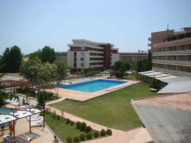 Отель находится в южной части самого большого курортного комплекса Болгарии – Солнечный берег, в 100 метрах от моря на первой линии. Курорт расположен рядом с красивейшим древним городом Несебром, занесенном в список объектов всемирного культурного наследия ”ЮНЕСКО”. Расстояние до центра комплекса 2 км, а до международного аэропорта города Бургаса - 35 км. Местоположение отеля уникальное - перед ним нет других отелей, а только дюны и пляж.