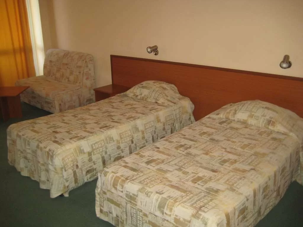 Четырехместные, пятиместные номера. Во всех комнатах телевизор, кондиционер, холодильник, тумбочки, платяной шкаф, санитарный узел, балкон, пластмассовые стулья и столик на балконе.