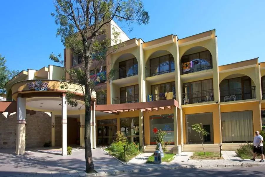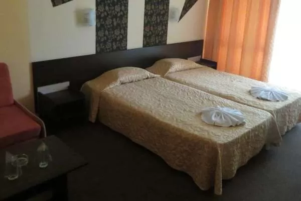 All inclusive. Завтрак: 07.30 – 9.00, обед: 12.00 – 13.30, ужин: 18.00 – 19.30. Местные алкогольные и безалкогольные напитки с 11.00 до 22.00 в баре возле бассейна. Закуски: бургеры, пицца, картофель фри, кофе, чай, печенье, мороженое - с 16.00 до 17.30.