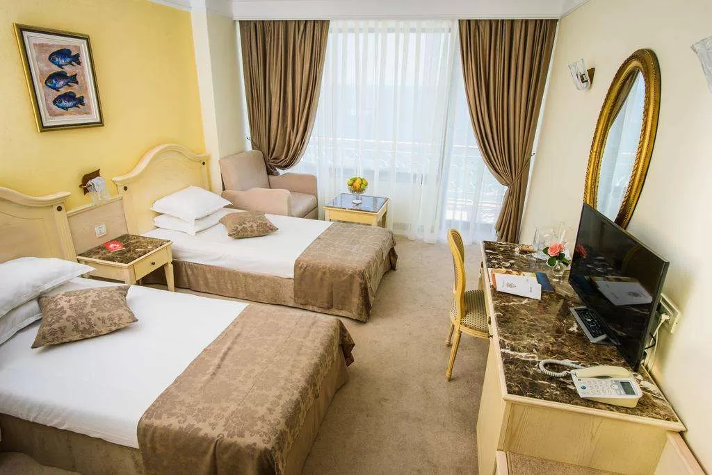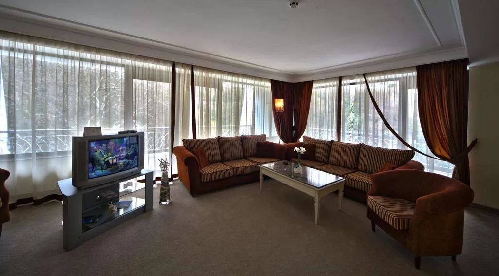 Доп. кровать (кресло-кровать); центральный кондиционер; спутниковое TV; мини-бар; телефон; Wi-Fi (бесплатно); санузел с ванной и феном; балкон; пол – ковровое покрытие; уборка номера – ежедневно; смена постельного белья – 3 раза в неделю; смена полотенец – ежедневно.В АПАРТАМЕНТЕ: гостиная, не отделенная от спальни.