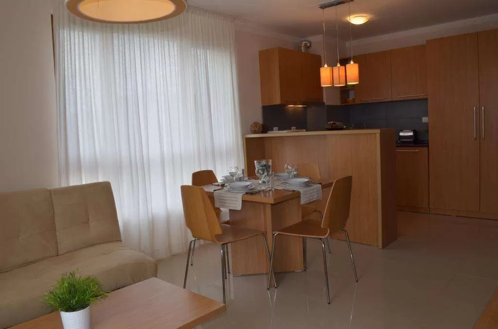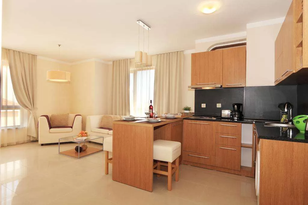 В апартаменте: гостиная и одна/две спальни, разделенные дверью.