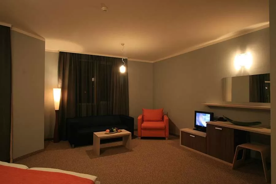Индивидуальный кондиционер • спутниковое TV • телефон • сейф • санузел с душевой кабиной • фен • балкон • пол – ковровое покрытие • уборка номера – ежедневно • смена белья – 3 раза в неделю • смена полотенец – по запросу (ежедневно).