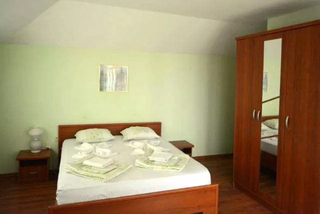 В апартаменте: гостиная с раскл.диваном и кух. уголком /плита, микроволновка, чайник, посуда, столовые приборы/, одна спальная комната, разделенная дверью от гостиной, спутниковое ТВ, кондиционер /за доплату/, холодильник, санузел с душем, сушилка для белья, большой балкон с видом на море.