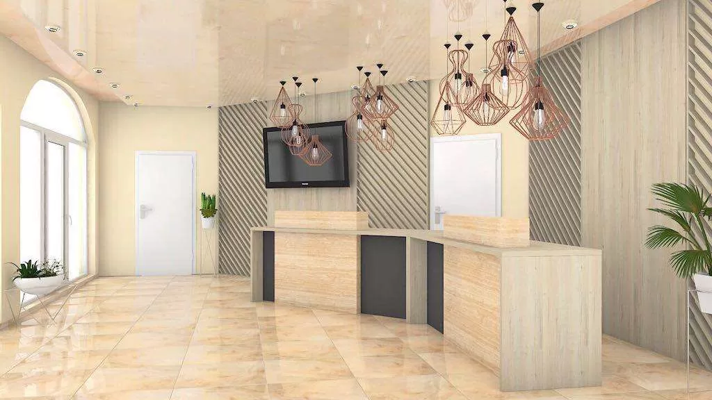 Отель состоит из 5-ти 4-этажных зданий, также оборудован лифтом. На территории отеля расположены бар, ресторан, частная парковка, парикмахерская, кинотеатр, банкомат, мини-маркет, библиотека.