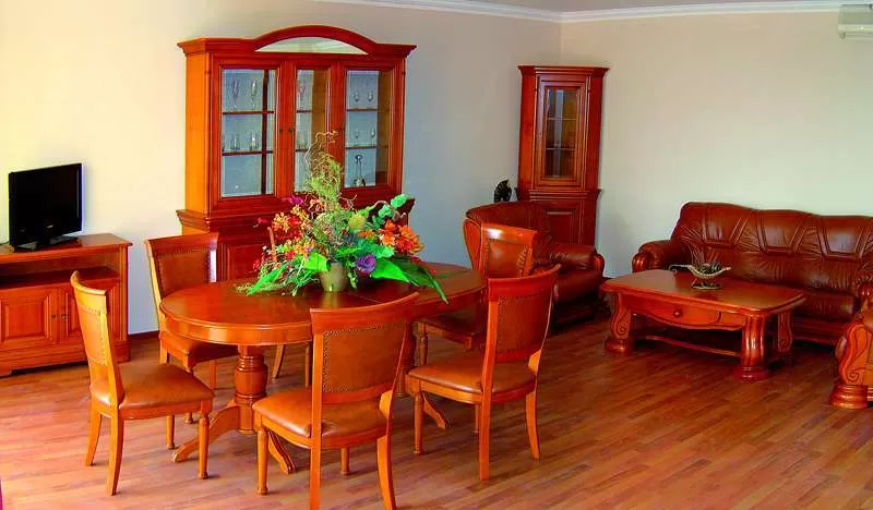 В апартаменте: • гостиная и спальня, разделенные дверью • маленькая кухня (без духовки и холодильника) • санузел с ванной.
