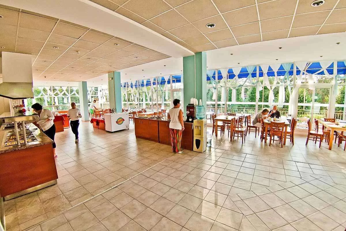 Основной ресторан, лобби бар, бассейн с детским отделением, лежаки и зонтики возле бассейна, детская площадка.